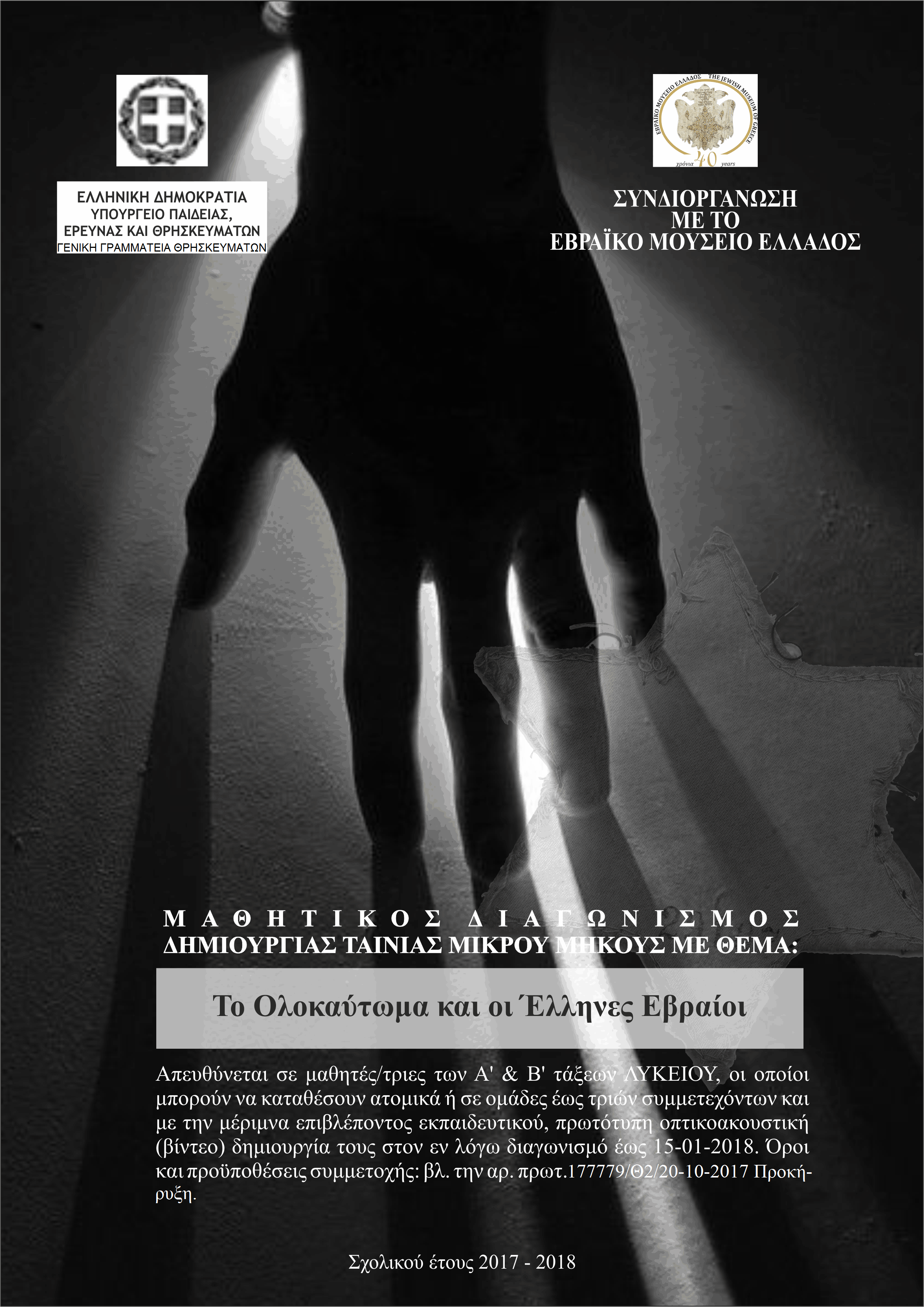 20-10-17 Μαθητικός Διαγωνισμός δημιουργίας ταινίας μικρού μήκους (βίντεο) με θέμα «Το Ολοκαύτωμα και οι Έλληνες Εβραίοι» - σχ. έτος 2017-2018