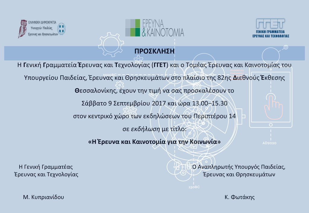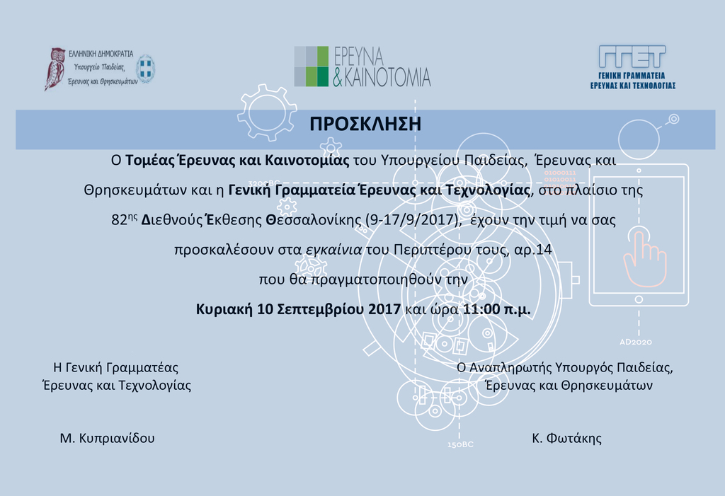 08-09-17 Η Γενική Γραμματεία Έρευνας και Τεχνολογίας στην 82η Διεθνή Έκθεση Θεσσαλονίκης