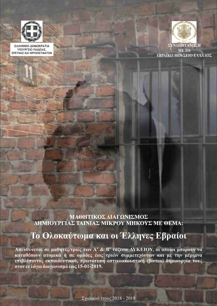 09-11-18 Μαθητικός Διαγωνισμός δημιουργίας ταινίας μικρού μήκους (βίντεο) με θέμα «Το Ολοκαύτωμα και οι Έλληνες Εβραίοι» - σχ. έτος 2018-19