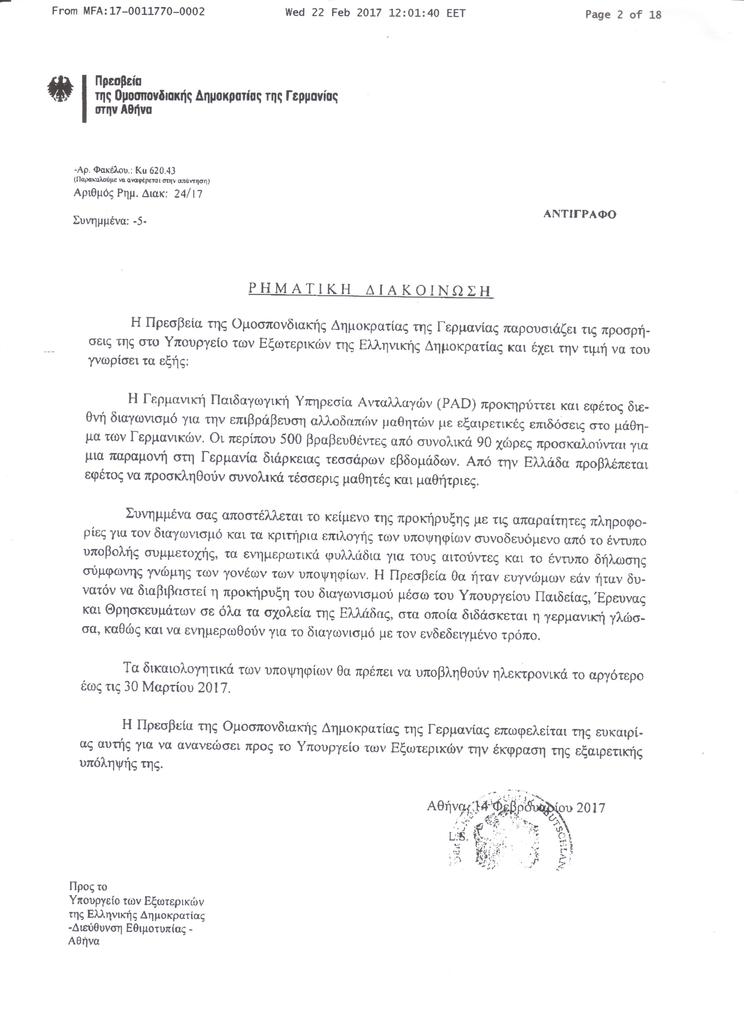 2. Αρ. Ρημ. Διακ. Γερμ. Πρεσβείας Αθηνών : 24/17, Αρ. Φακ. : Ku 620.43/14.2.2017